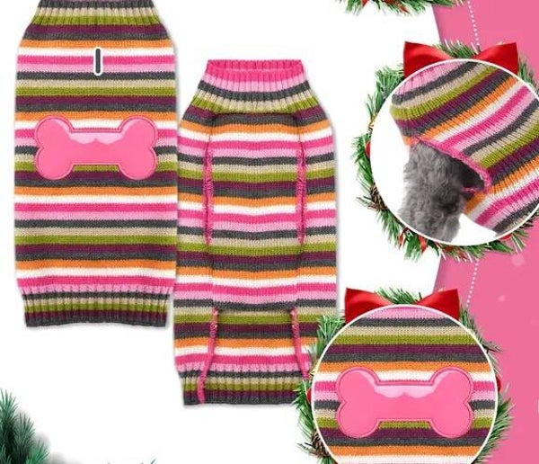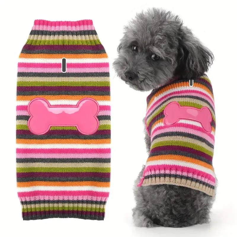 Gemütlicher Gestreifter Strickpullover für Hunde mit Knochen-Design Warmer Pullover für kleine Hunde & Katzen, Perfekt für Herbst und Winter