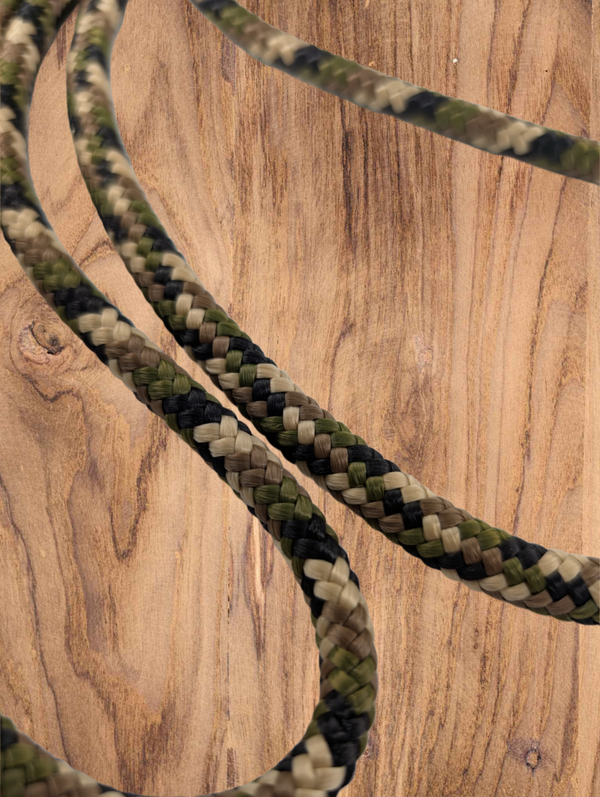 Die Hundeleine ist aus PPM Seil in der Farbe camouflage aus einem Stück gearbeitet. Sie vereint Leine und Halsband in einem. Durch die Stufenlose Verstellbarkeit paßt sie sich an den Hundeführer und den Hund an.