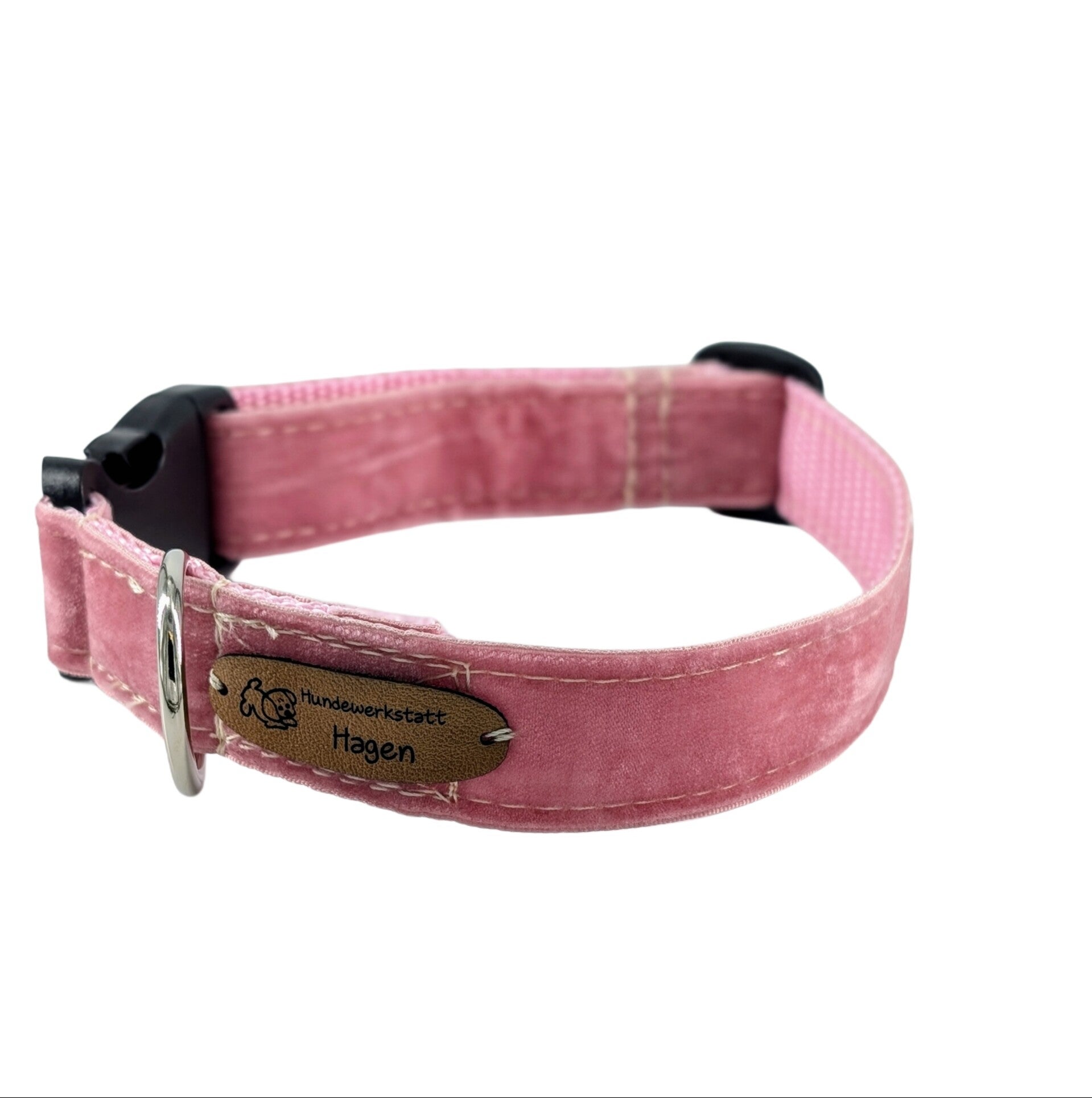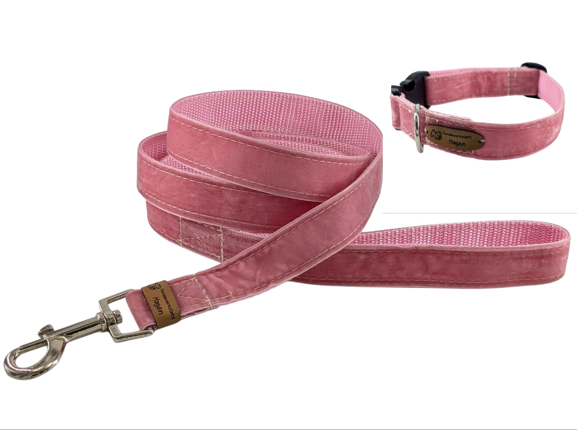 Samthalsband und Samtleine im Set - altrosa, 25mm breit